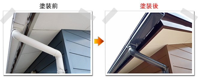 外壁と雨樋ともに、弱溶剤2液型アクリルシリコン樹脂塗料を塗装しました。